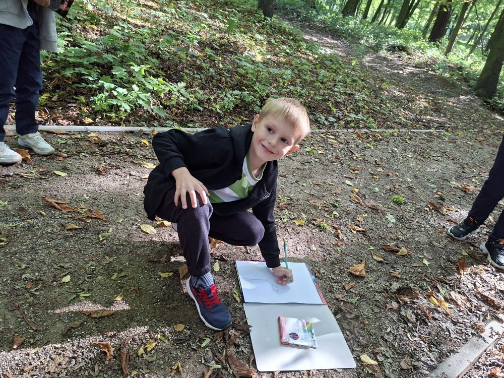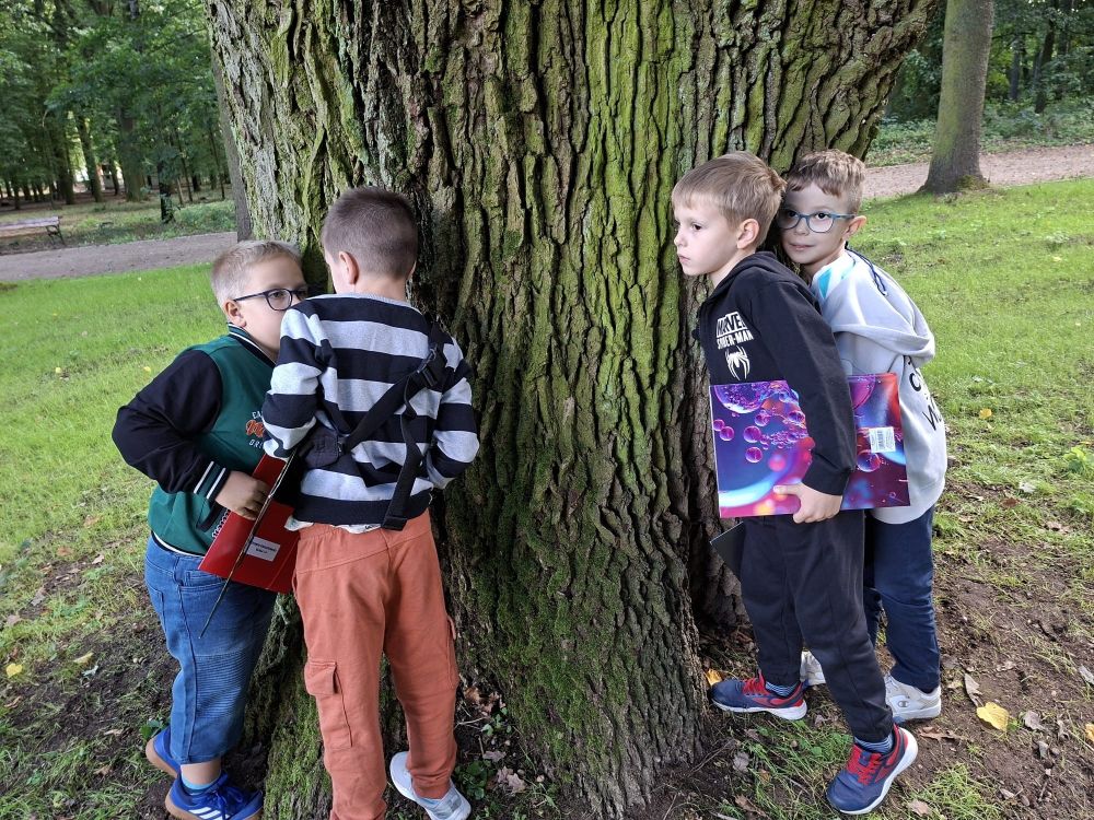 "Ciekawi świata i jego tajemnic" -1A na wycieczce w parku. Pirwszoklasiści szukali i rejestrowali to, co budziło ich zainteresowanie. Realizowali prośby wyrażone w liście Jesieni. Dzielili się wrażeniami po spacerze. Cóż to był za dzień