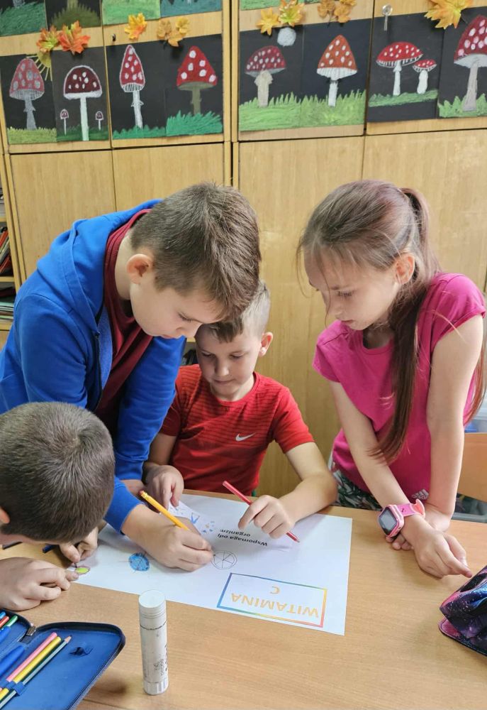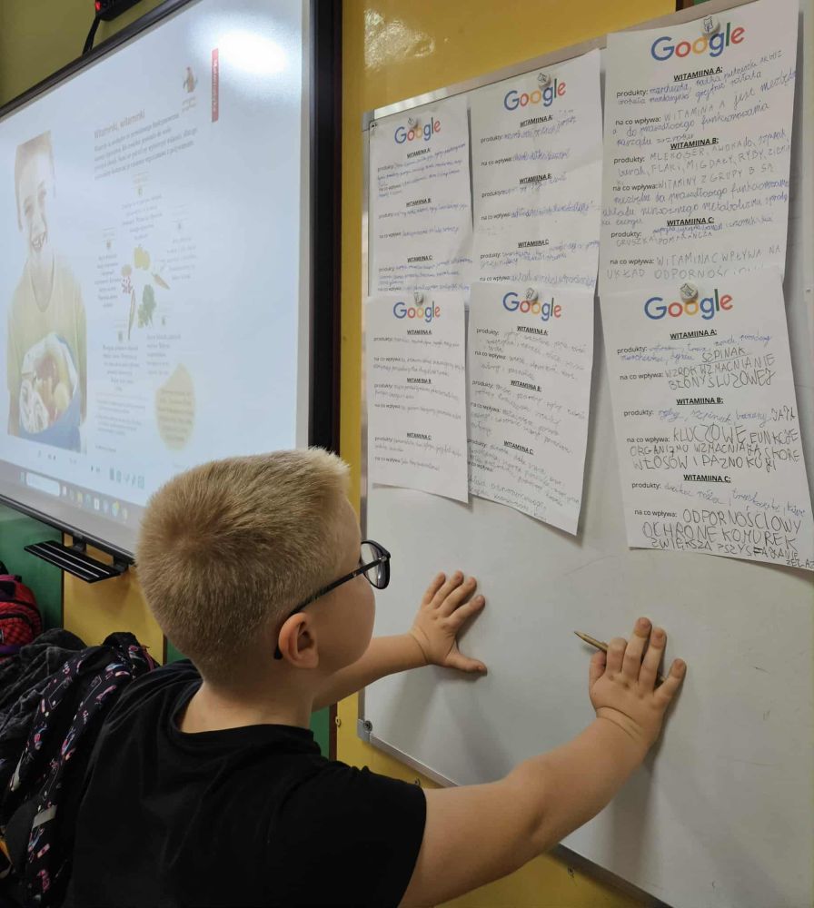 "Moc witamin" Uczniowie klasy 3B pracowali metodą projektu - samodzielnie wyszukiwali w Internecie informacje na temat witamin, najważniejsze z nich umieścili na kartach pracy, a następnie w mniejszych grupach, korzystając z przygotowanych wcześniej materiałów, wykonali plakaty i zaprezentowali efekty swojej pracy