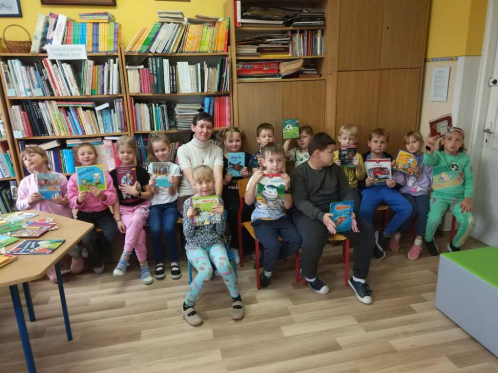 W środę 29 października najmłodsi uczniowie naszej szkoły stali się czytelnikami biblioteki szkolnej. Dzieci poznały zasady wypożyczania książek oraz postępowania z nimi. Z uwagą wysłuchały wierszyków o książkach, z ciekawością też obejrzały zaproponowane im tytuły książek dla najmłodszych czytelników. Głównym punktem spotkania było pasowanie na czytelnika, którego dokonała pani bibliotekarka, używając największej książki w bibliotece. Na zakończenie spotkania każde z dzieci wypożyczyło z biblioteki szkolnej swoją pierwszą książkę. Niech ta przygoda czytelnicza trwa wśród dzieci jak najdłużej!