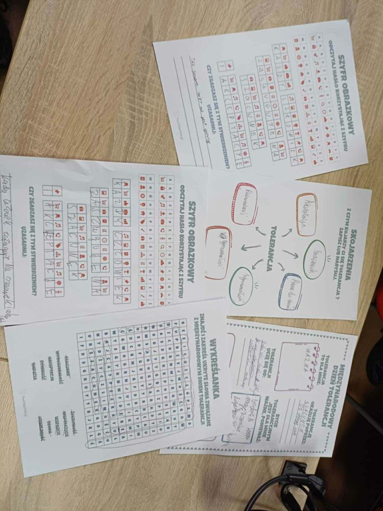 Międzynarodowy Dzień Tolerancji w naszej szkole 16 listopada to Międzynarodowy Dzień Tolerancji, z tej okazji psycholog i pedagog specjalny przygotowali dla uczniów działania, których celem było promowanie szacunku, empatii i otwartości na różnorodność. Zajęcia z uczniami obejmowały rozmowy o akceptacji, współpracy i reagowaniu na wykluczenie. Podczas zajęć wykorzystaliśmy filmik edukacyjny, karty pracy, które pomogły uczniom: – zrozumieć, czym jest tolerancja; – zastanowić się nad własnymi postawami; – wspólnie wypracować sposoby budowania przyjaznej atmosfery w klasie; -współpracować w grupie; -pracować nad komunikacją interpersonalną. Karty pracy stały się inspiracją do ciekawych dyskusji i ćwiczeń w parach. Dziękujemy wszystkim za aktywny udział! Razem tworzymy szkołę, w której każdy jest ważny, widziany i akceptowany .